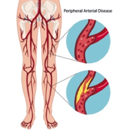 • Intermittent claudication - the thigh or calf muscles may feel pain when walking or climbing stairs; some individuals complain of painful hips.